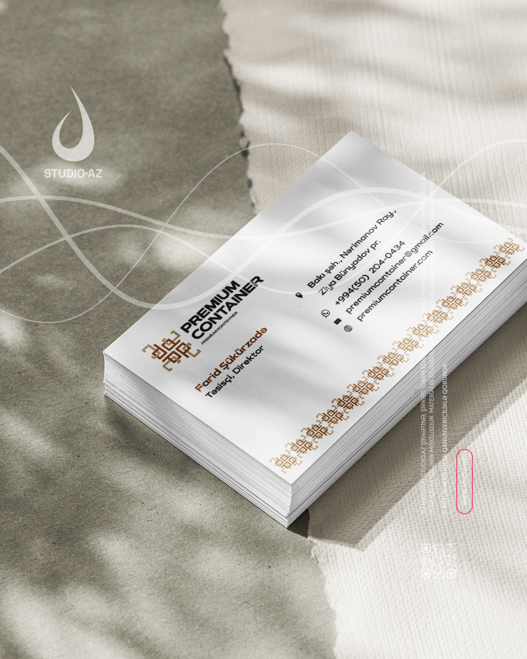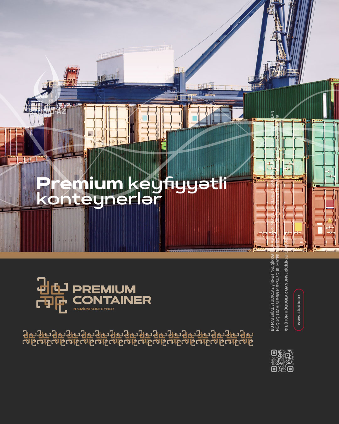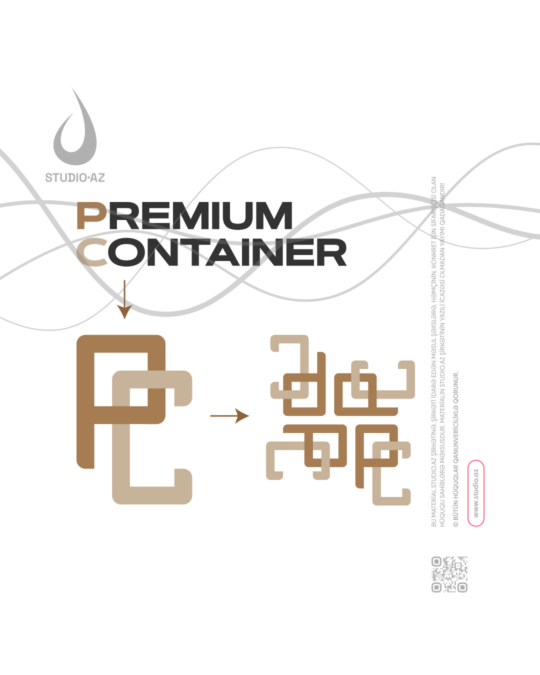 Məqsədimiz – əcnəbi ölkələrdə satışı təşkil edilən konteynerlərin milli-müasir üslubda Vizual kimliyini (loqotip və müvafiq olaraq korporativ tərtibat üslubu) hazırlamaq idi. Rənglər – premium rənglərdir – tünd qəhvəyi və qızılı rənglər.
